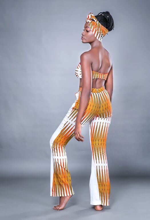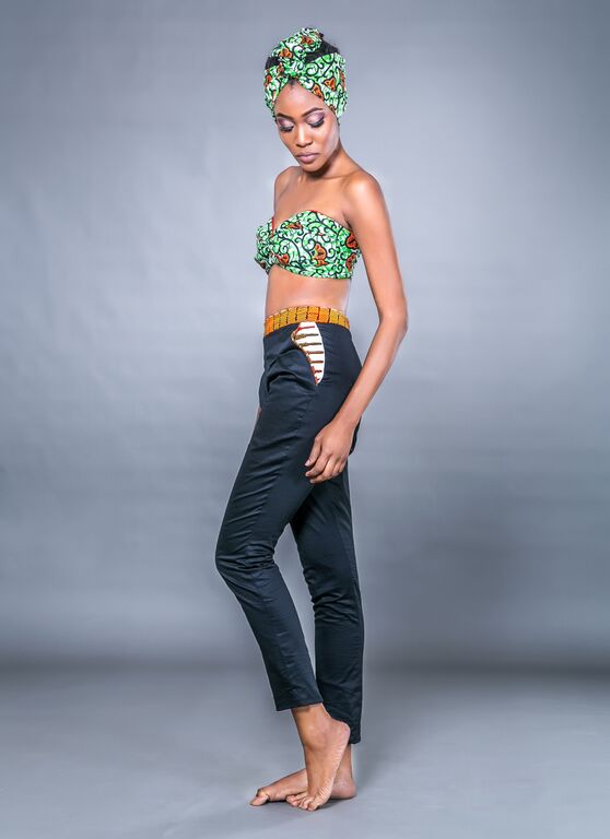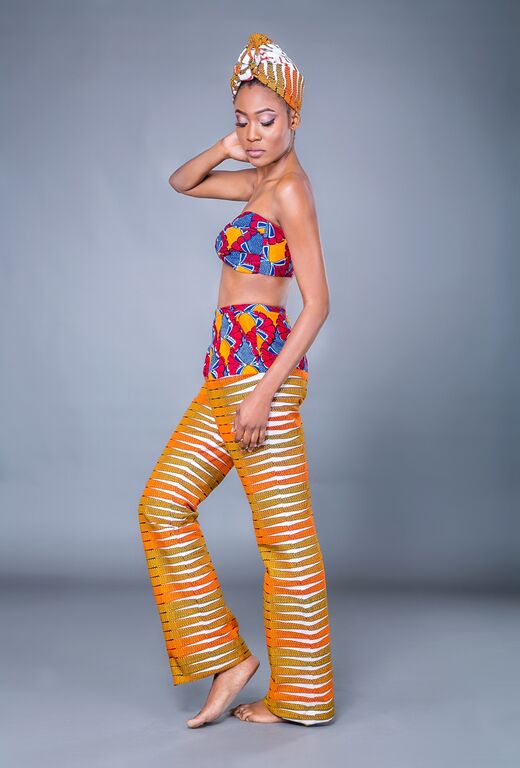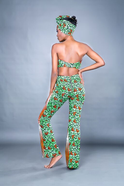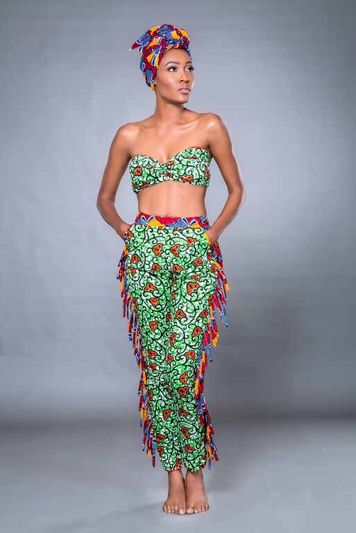 The collection has been created for the chic lady who wants to spice things up with fun tribal prints. The “Sisi Series” features a combination of fashionable pieces and details like patterned ankara pants, fringe detailing, cutout jumpsuits and fun ankara bralets.